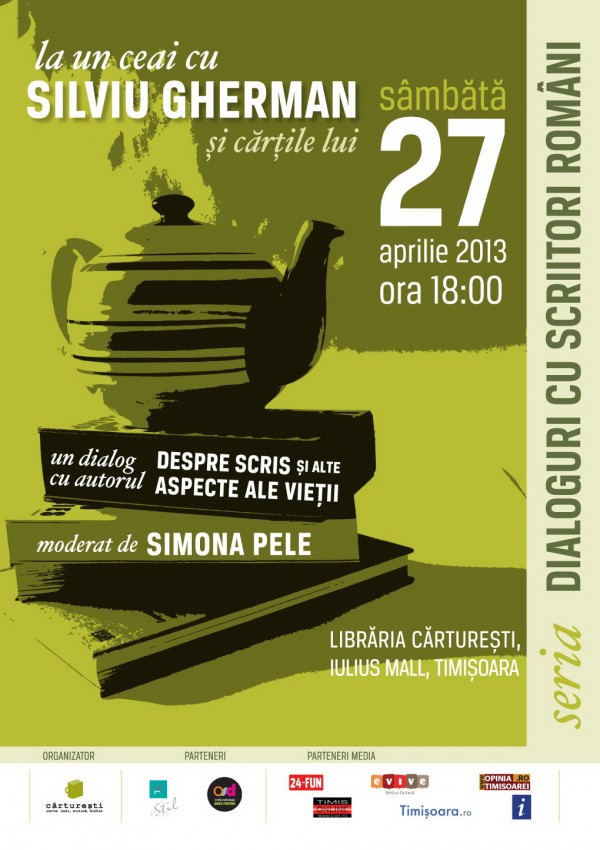 Sâmbătă, 27 aprilie 2013, ora 18:00, în librăria Cărtureşti din Iulius Mall stăm la poveşti cu Silviu Gherman – despre scrierile lui, despre viaţa în afara cărţilor, despre tot ce se poate vorbi şi multe altele, de la „Hârtiile masculului” încoace sau încolo.
