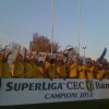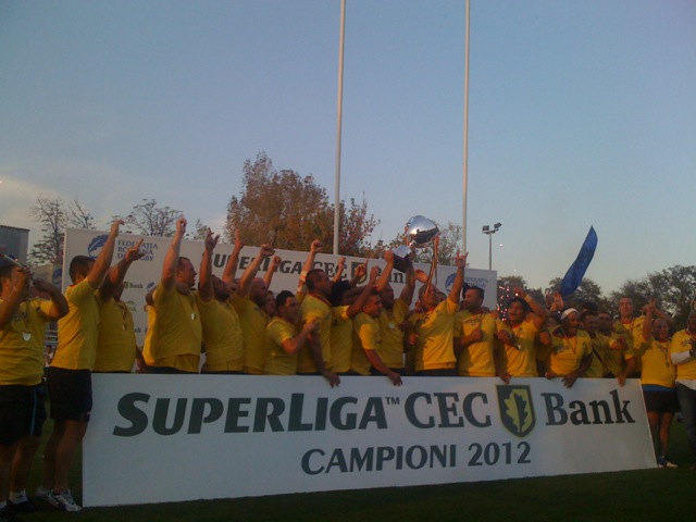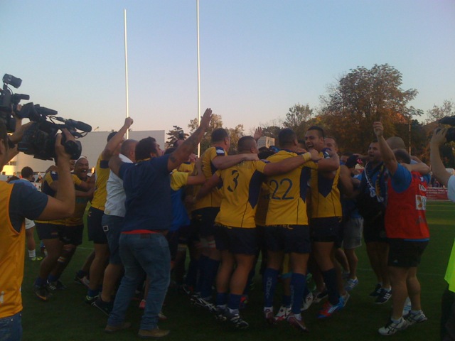 RCM MVT Universitatea de Vest Timişoara este nouacampioană a României la rugby. Trofeul a venit după un meci trăit la intensitate maximă, din care Vali Calafeteanu a ieşit cu mâna ruptă, iar Mateaki Kafatolu cu capul spart şi mult sânge lăsat pe tricourile coechipierilor. De asemenea, un fan al RCM-ului a avut probleme cu inima de emoţii. Însă totul s-a terminat cu bine şi titlul a fost ridicat deasupra capului de bănăţeni.