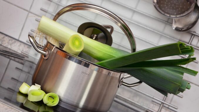 Notă: Se mai poate pregăti această supă, înăbușind prazul tăiat felii cu puțin unt, înainte de a-l pune la fiert.