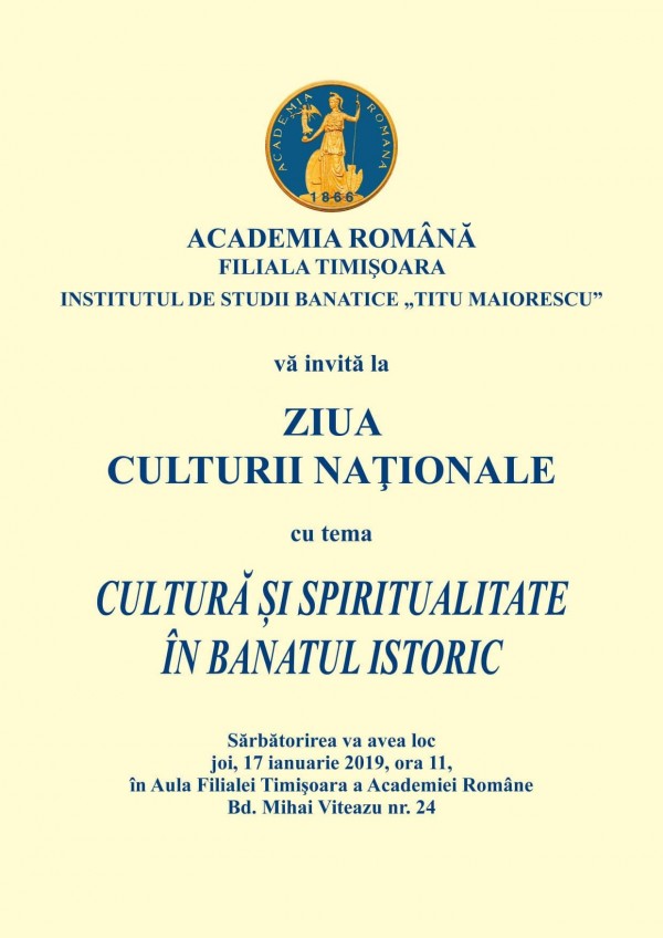 Sub genericul Cultură şi spiritualitate în Banatul istoric, în organizarea Academiei Române, Filiala Timișoara și a Institutului de Studii Banatice „Titu Maiorescu”, s-a desfășurat, în 17 ianuarie a.c., o excepțională manifestare cultural-științifică dedicată Zilei Culturii Naționale.