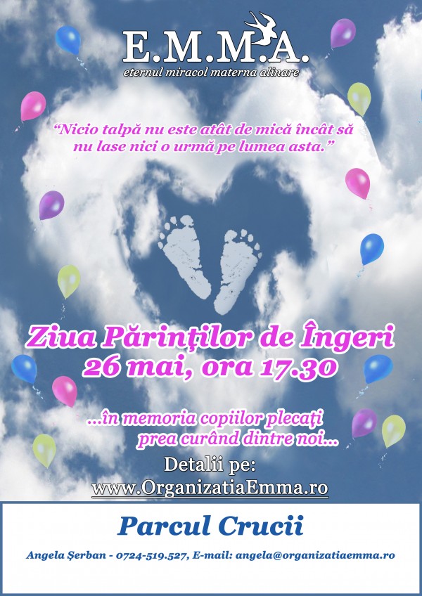 Si in acest an, copilasii plecati prea devreme dintre noi, vor avea parte de o zi numai a lor, marcata de Organizatia E.M.M.A. prin Ziua Parintilor de Ingeri, singurul eveniment din Romania si cel mai mare din lume, de acest gen, dedicat memoriei copiilor plecati dintre noi