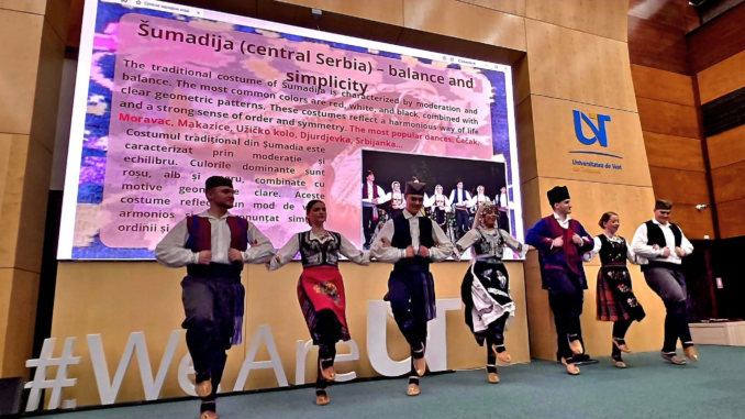 Manifestarea a început ieri după-amiază, în Aula Magna a UVT, o dată cu spectacolul de dansuri sârbești susținut de Ansamblul „Mladost” al Casei de Cultură a Studenților din Timișoara. Coregrafia semnată de Senadin Krstić a adus în fața spectatorilor o explozie de ritm, pasiune și energie specifice acestei etnii.