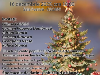 În data de 26 februarie 2026, la ora 17:00, la sediul Centrului de Cultură și Artă al Județului Timiș, publicul este invitat la spectacolul clasei de canto – muzică populară, profesor Adrian Stanca, un eveniment ce evidențiază continuitatea și valoarea tradiției muzicale populare. Acompaniază orchestra Școlii de Arte Timișoara, coordonată de profesorul Silviu Drăgan. Accesul este liber.