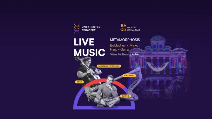 Harpistul Alexander Boldachev și chitaristul Alex Misko se vor afla duminică, 10 mai 2026, începând cu ora 19,00, la Timișoara, într-un spectacol de muzică special, care va aduce muzica live, storytelling-ul și arta vizuală pe scena Cinema Timiș. Intitulat “Metamorphosis”, spectacolul face parte din seria “Unexpected Concert” organizată de Asociația EDCUS și promite publicului o experiență artistică complexă, în care muzica live se întâlnește cu proiecții vizuale imersive realizate în timp real de către artistul multimedia Adistu, într-un live visual performance care transformă scena într-un univers cinematografic
