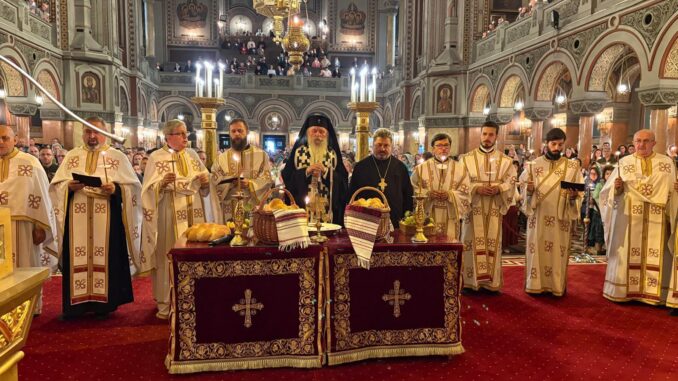 La finalul sfintei Liturghii, Părintele Mitropolit Ioan, înconjurat de soborul slujitor, alcătuit din preotul Ionel Popescu, vicar eparhial, arhidiaconul Ioan Radu, fost secretar eparhial, preotul Timotei Anișorac, consilier eparhial, preotul profesor Nicolae Morar, fost coordonator al Facultății de Teologie din Timișoara, precum și preoții și diaconii catedralei, a săvârșit slujba Parastasului pentru mitropolitul Nicolae, la împlinirea a 11 ani de la trecerea sa la cele veșnice.