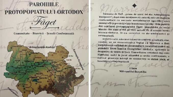Tipărit cu binecuvântarea Înaltpreasfințitului Părinte Ioan, Mitropolitul Banatului, monumentalul volum însumează 835 p., însoțite de documente, sute de imagini, statistici, index și prezintă istoria celor 70 de parohii și filii ale protopopiatului Făget, a școlii confesionale, dar și scurte biografii ale preoților parohi aflați astăzi în activitate.